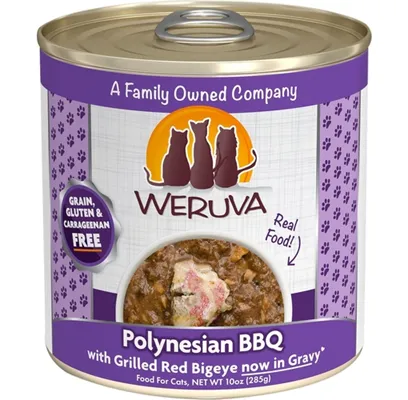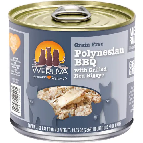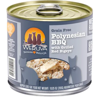 Take your cat on a trip to the tropics in your own kitchen! Open up a can of Weruva Polynesian BBQ With Grilled Red Big Eye Canned Cat Food and let your furry friend enjoy a meal packed full of whole fish protein. With three different fishes including sardine, tuna, and red bigeye your kitty will surely get its source of protein and will love all the subtropical flavors that come with this food. Weruva Polynesian BBQ With Grilled Red Big Eye Canned Cat Food is also carrageenan free to ensure your kitty a filling and healthy meal with each can.
