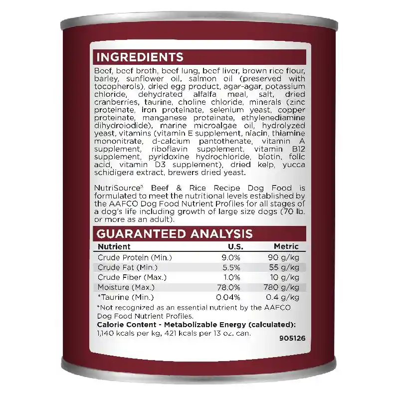 Nutri Source Dog Can Beef & Rice 13 Oz