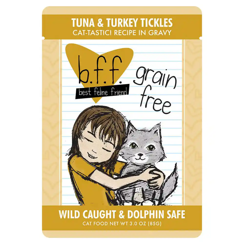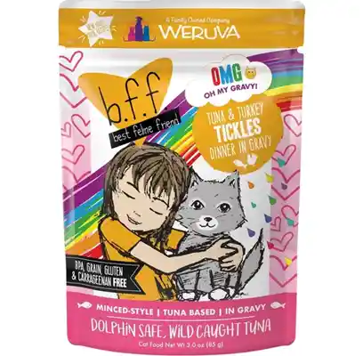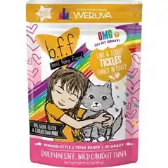 Turn your cat into your BFF with Weruva BFF Tuna and Turkey Tickles Recipe Pouches Wet Cat Food. Your cat will feel a tickle in their tummy after getting a bite of this wholesome food. With wild-caught tuna and cage-free turkey, this food is packed full of protein for a healthy kitty. Weruva products are free of any grains, gluten, starch, and carrageenan for a balanced meal in each can.