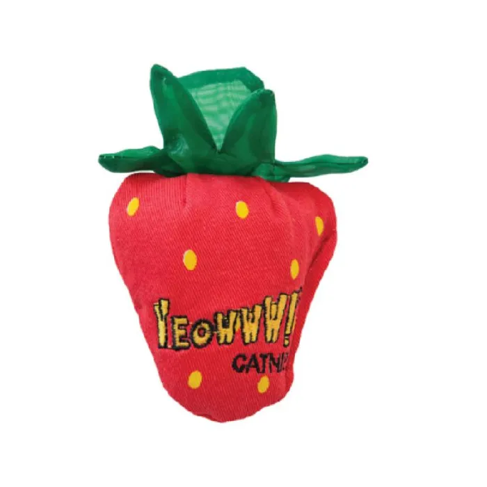 Looking for a more fruitful relationship with your cat? Just add Yeowww! Catnip Strawberries! Sold in a 3-pack or individually - plain or dipped in white or dark “chocolate” - our berry fun treats are just the thing to shake up kitty’s playtime. That’s because these plump mouthfuls are loaded with our own version of vitamin C - catnip! It’s the same organically-grown catnip we use in all of our products that has made Yeowww! famous and has cats asking for it by name. For added interest, the leaves and stems feature a fun crinkle texture!