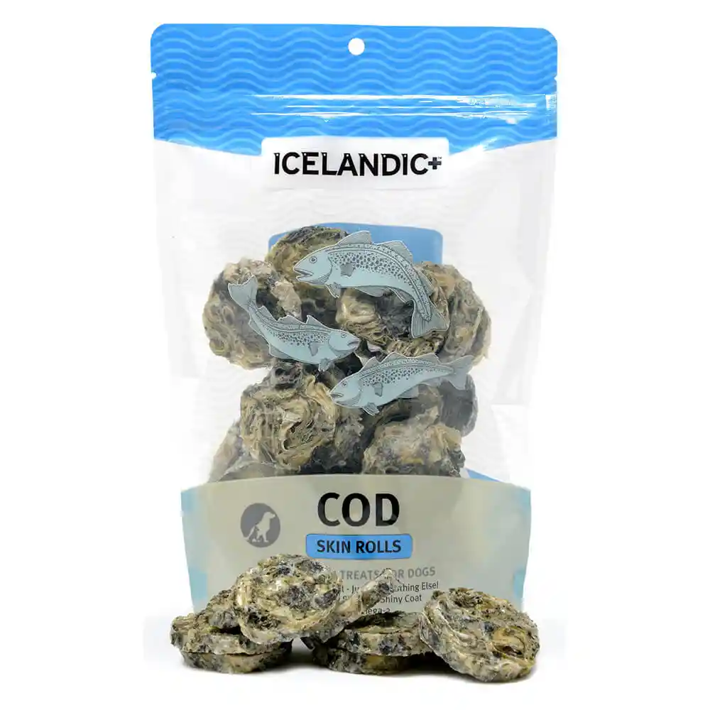 For freshness and convenience, our fish are packaged in a stand-up resealable bag. Each package contains net wt. 3.0 oz. of Icelandic+ Cod Skin Rolls.