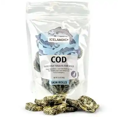 Our 100% natural and edible Icelandic Cod Fish Skin Rolls are single ingredient and contain no additives, preservatives or supplements. They come only from the pure icy waters of Iceland and are line-caught daily and processed immediately. Not only are they delicious for your dog, they reduce tartar and plaque build-up for healthier gums and teeth. They are also a great natural source of Omega-3 fatty acids, promoting healthy skin and coat for your pet. With just one ingredient, these tasty and healthy treats are perfect for dogs with protein sensitivities. Our natural and edible fish products offer peace of mind, as they are cleaned and air-dried within FDA, USDA, EU, and MAST standards and regulations. Because Iceland almost never gets warm, our fish always remain cold after being caught. As a result, they have less smell than other fish treats in the market.