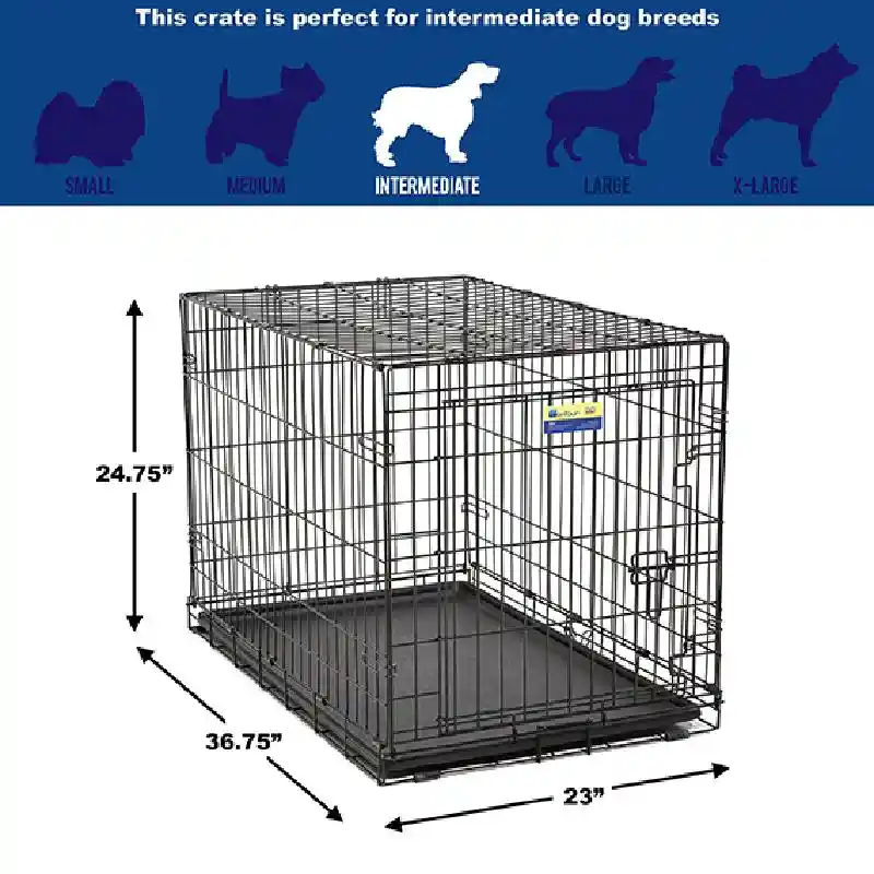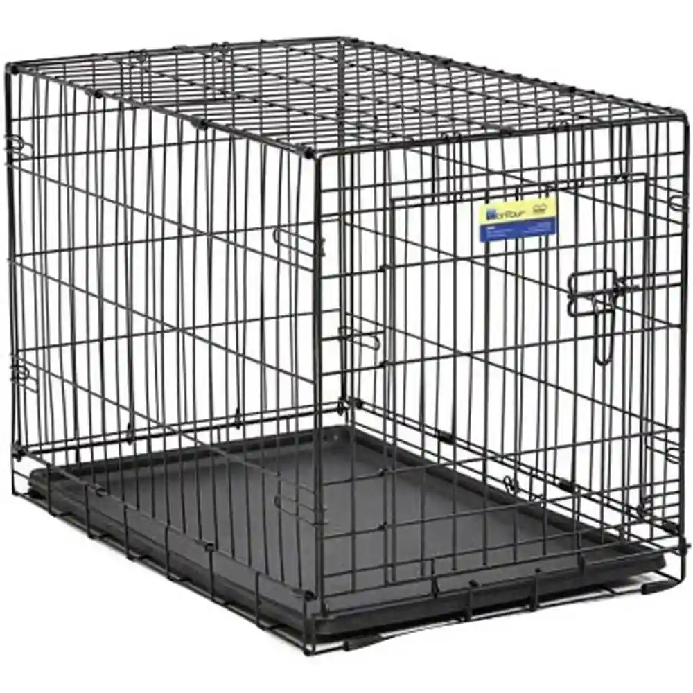 Contour dog crates by Midwest Homes for Pets are your dog's home for life! Designed completely around the safety, security, and comfort of your dog, Contour crates set up easiLy in seconds without tools. Contour crates easily fold down to a portable size for suitcase-style carrying and include plastic carrying handles to move the folded crate from one location to another comfortably.