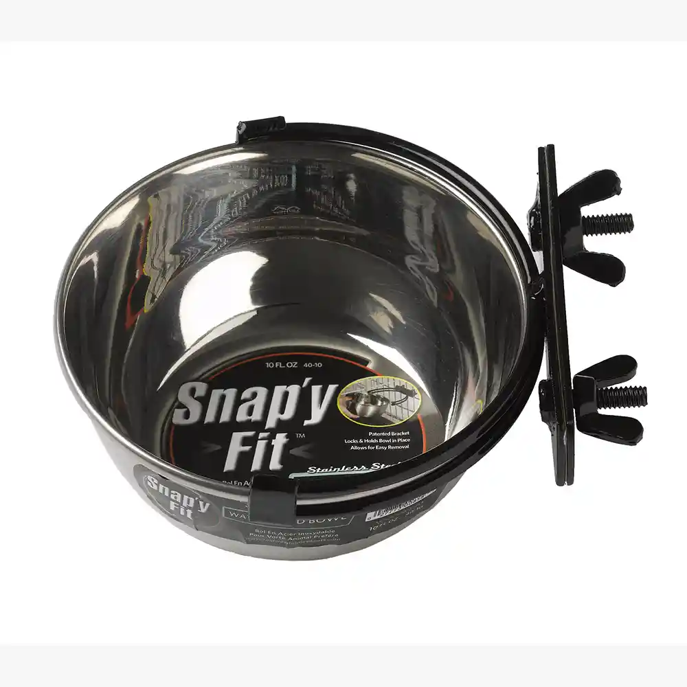 Midwest Homes for Pets Stainless Steel Snapy Fit Water and Feed Bowl comes with a corresponding holder to avoid spills or mess. The Snapy fit system holds the bowl tightly and yet makes it easy to remove. You can tighten the bracket available to the cages and slide the stainless steel bowl safely in it. The twin pole design avoids the bowl from rotating in the bracket.