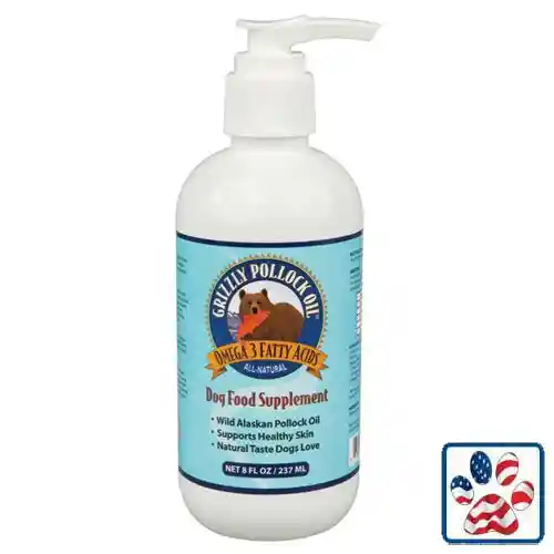 Our Grizzly Pollock Oil Dog Food Supplement is made from wild-sourced Alaskan pollock and boasts a very high content of the Omega-3 fatty acid EPA and a very low Omega-6 contentโmaking it ideal to support a healthy skin and coat.