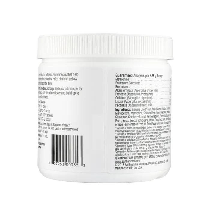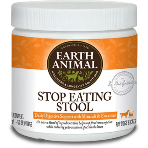 Earth Animal Stop Eating Stool is a nutritional supplement designed to help stop stool-eating episodes in dogs and cats. This special blend of nutrients and minerals is formulated to diminish yellow staining spots on the lawn. With a size of 8 oz, this supplement provides daily digestive support for your pet. Give your furry friend the support they need to maintain a healthy and active lifestyle with Earth Animal Stop Eating Stool.