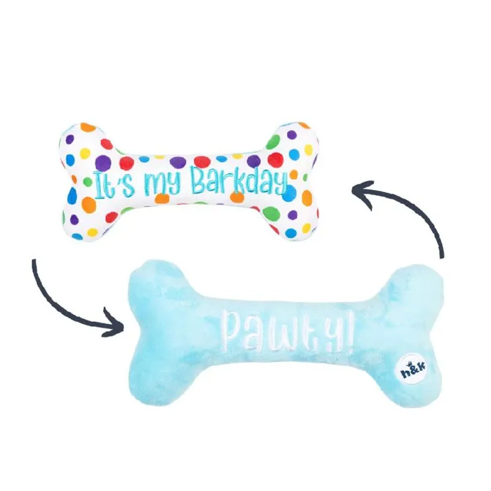 Huxley & Kent Dog Toy It's My Barkday Bone Large