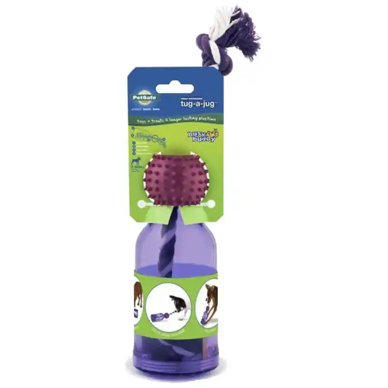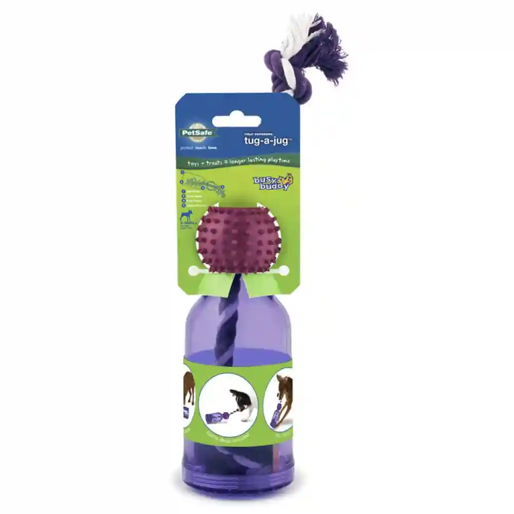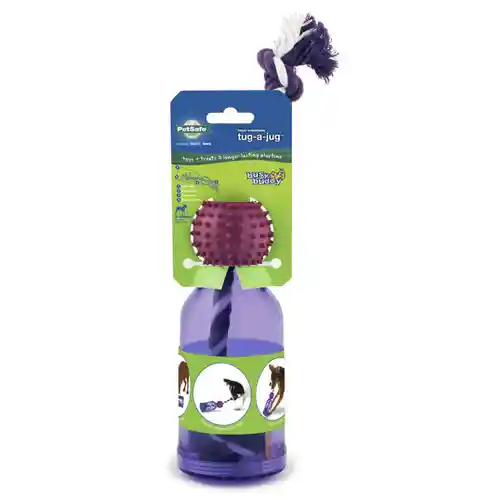 If your pet needs a multi-purpose toy to keep them extra busy, treat them to a PetSafeยฎ Busy Buddyยฎ Tug-A-Jugโข. This durable plastic jug randomly dispenses treats and holds up to super strong chewers. The braided rope is great for playing tug-of-war and the jug can double as a slow feeder for pets who eat too fast. Our patented Treat Meterยฎ dispenses treats randomly while your dog plays with the toy. Trim the prongs to make treats come out faster. Available in extra small, small and medium/large. PetSafeยฎ brand is here to help you and your pet live happy togetherโข.