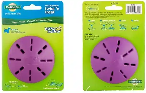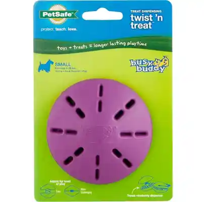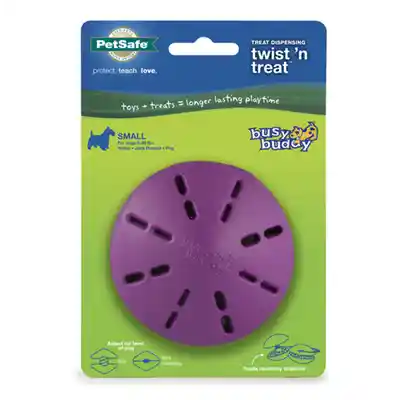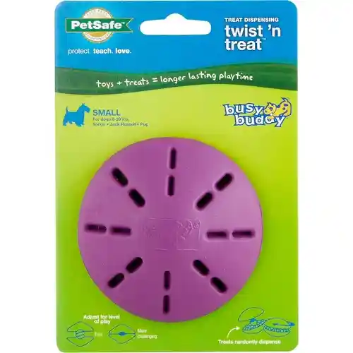 What dog doesnโt love a challenge? The PetSafeยฎ Busy Buddyยฎ Twist 'n Treatโข allows you to stuff his new favorite toy with a wide variety of treat options. Fill with hard, soft, and smearable treats. Twist the halves far apart to give your dog a quick reward or twist closer together for more of a challenge that will keep your pup playing for hours. Our patented Treat Meterยฎ dispenses treats randomly while your dog plays with the toy. Trim the prongs to make treats come out faster. Available in extra small, small, medium and large. PetSafeยฎ brand is here to help you and your pet live happy togetherโข.