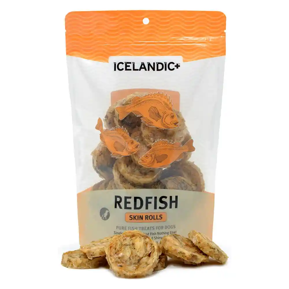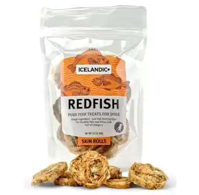 Delicious meets nutritious with our crunchy Redfish Skin Rolls, a natural source of Omega-3 fatty acids for healthy skin and coat. These premium dog treats feature just one ingredientโIcelandic golden redfishโand contain no additives, preservatives or supplements. After being line-caught daily in the icy pure waters of Iceland, our redfish are cleaned and air-dried within FDA, USDA, EU, and MAST standards and regulations. Since these treats feature only one protein source, they are a great choice for dogs with food sensitivities. Plus, they reduce tartar and plaque build-up for healthier teeth and gums.