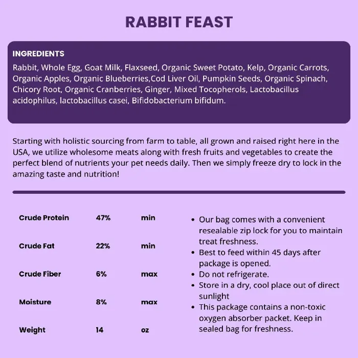 This recipe is made with wholesome venison rabbit meat, fresh fruits, and vegetables.