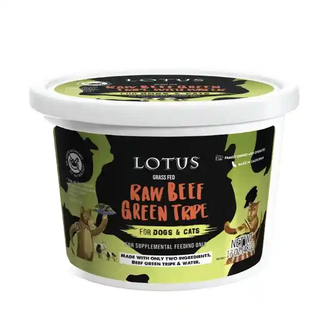 Lotus Grass-fed Raw Beef Green Tripe Dog & Cat Food Topper 17-oz