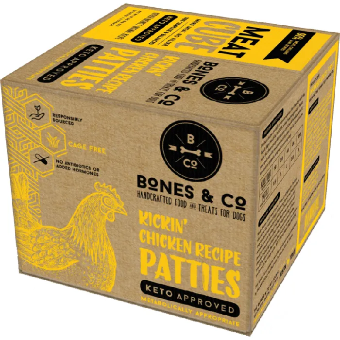 Bones & Co Meat Cube Kickin' Ckn Recipe Patties Frzn Dog Food, 18-lb