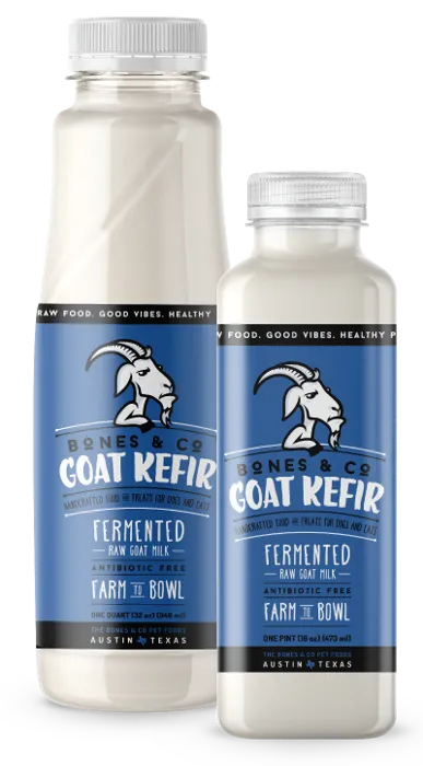 The extra probiotic benefits of goat kefir are powerful tools when dogs need them, while our raw goat milk is excellent for every day feeding.
