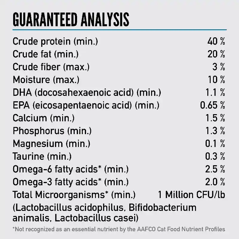 - Offers a diversity of fresh and raw meats unmatched by conventional cat food; 85% meat inclusions, 15% veggies & fruits, 0% grain
