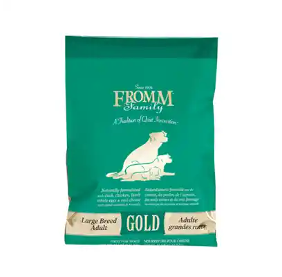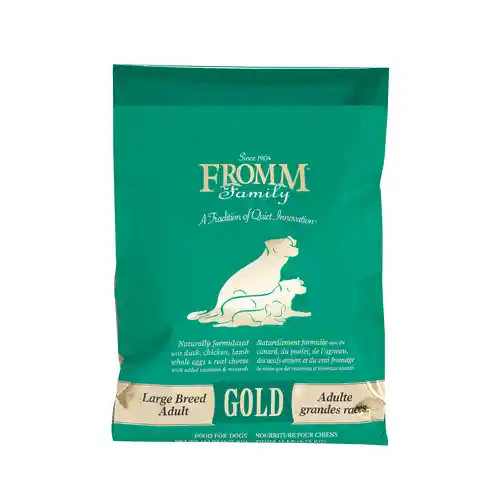 Keeping the needs of your large dog in mind, Fromm Gold Large Breed Adult Formula Dry Dog Food is made to support the needs of those weighing more than 50 pounds. Made with high quality protein like chicken and duck and paired with fresh produce including potatoes and carrots, Fromm Gold Large Breed Adult Formula Dry Dog Food provides well rounded, balanced nutrition for your furry friend without the unnecessary fillers! This recipe also supports the health of your dog's coat and skin with guaranteed levels of Omega fatty acids and is enhanced with probiotics to ensure that their digestion is right on track! Fromm Gold Large Breed Adult Formula Dry Dog Food is made with quality ingredients found in the United States with no artificial colors, flavors, or preservatives that any pup is sure to love!