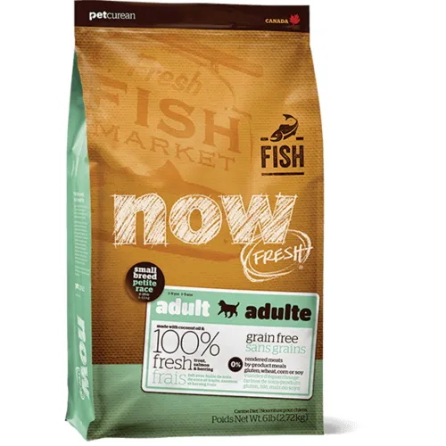NOW FRESH Small Breed Adult Recipe is made with 100% FRESH fish, and 100% fresh Omega 3 & 6 oils from coconuts and canola. NOW FRESH also features zero grains, gluten, wheat, beef, corn or soy. Zero rendered meats, by-products or artificial preservatives.