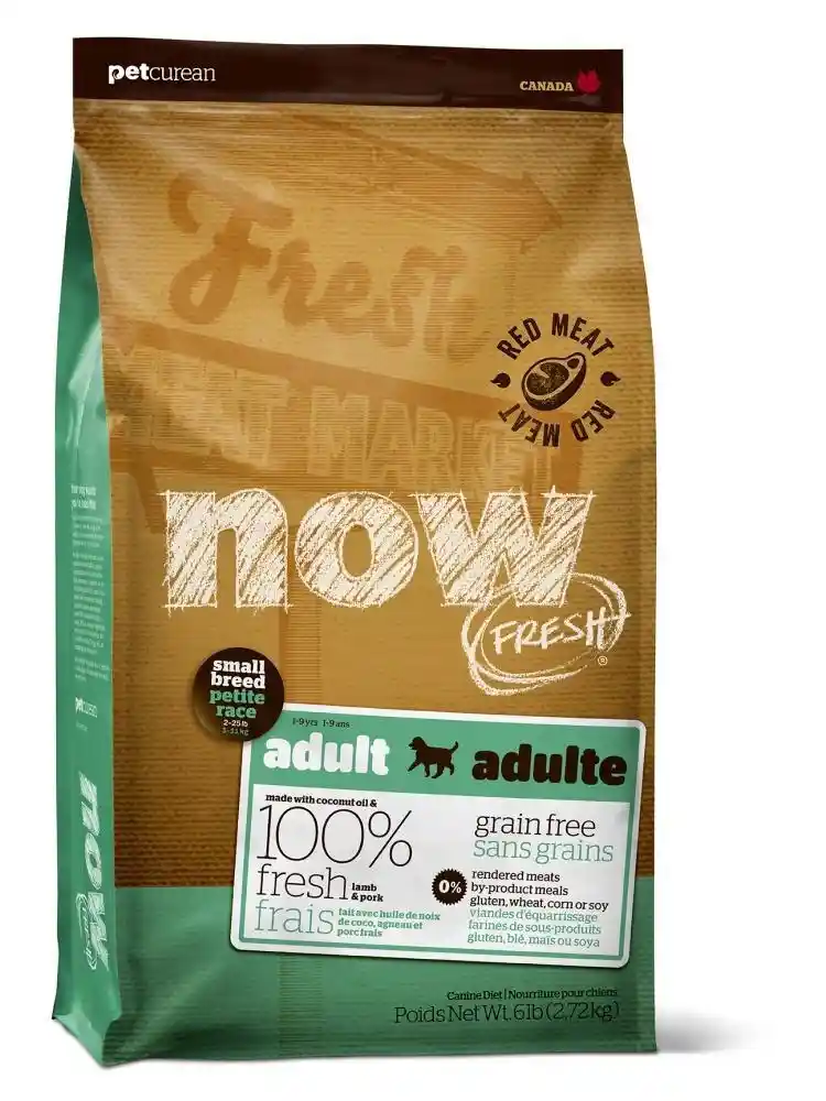 NOW FRESH Small Breed Adult Recipe is made with 100% FRESH red meat, and 100% fresh Omega 3 & 6 oils from coconuts and canola. NOW FRESH also features zero grains, gluten, wheat, beef, corn or soy. Zero rendered meats, by-products or artificial preservatives.
