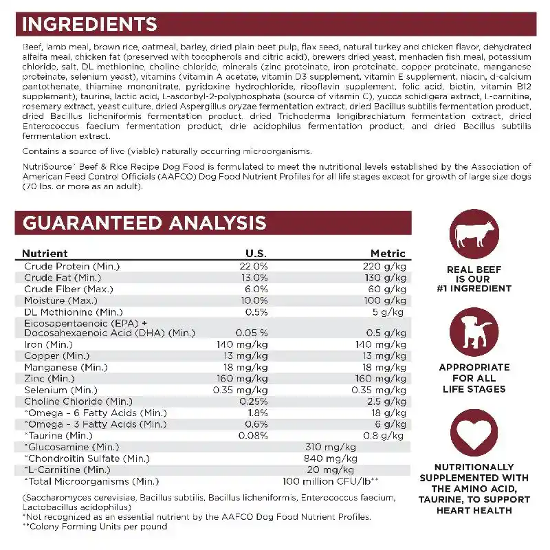 Nutri Source Dog Beef & Rice 4 Lbs