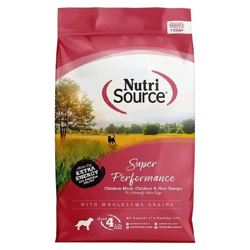NutriSourceยฎ Super Performance Chicken and Rice formula is ideal for all breeds and all life stages. NutriSourceยฎ Super Performance Chicken and Rice formula delivers super premium nutrition in a holistically formulated, easy-to-digest food. Our Super Performance dog food is often considered the best value in any store across the nation, pound for pound when it comes to cost, quality ingredients and our unsurpassed Alltech supplements (Good4Life) - there is no equal! We combine low-ash chicken meal, humanely certified chicken, rice, and carefully selected holistic ingredients to promote balanced growth and unparalleled health for your special friend. Health of your beloved pet is our #1 priority and our unmatched use of Good 4 life supplements guarantees the new addition to your family won't have any runny stool issues and a healthier immune system, we guarantee it. Bio-availability is important to your pets long-term health so we created a highly digestible, nutrient dense morsel with +85% digestibility rating. With NutriSourceยฎ you can feed less and get more nutrition - Health begins here!. NutriSourceยฎSuper Performance Dog Food is formulated to meet the nutritional levels established by the Association of American Feed Control Officials (AAFCO) Dog Food Nutrient Profiles for all life stages except for growth of large size dogs (70 lbs. or more as an adult). NutriSourceยฎ foods can ensure maximum bioavailability - All the nutrition necessary for a happy, healthy life.