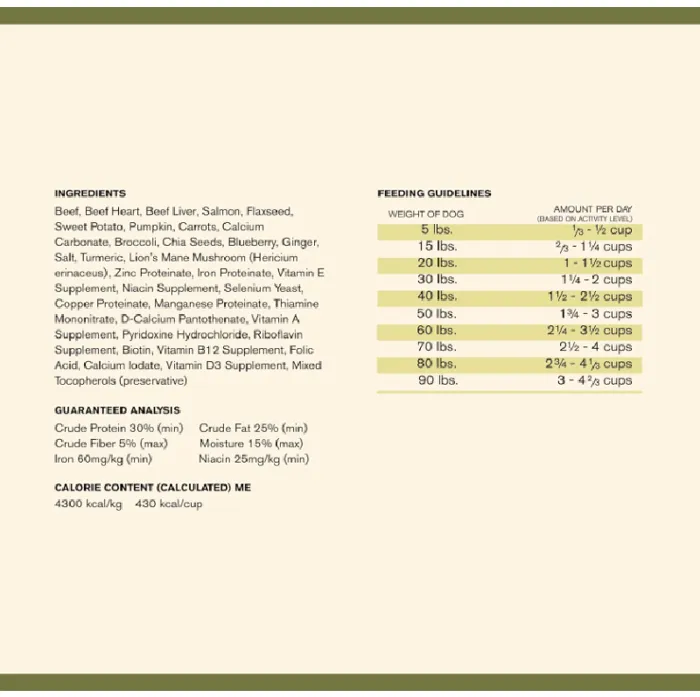 These carefully selected ingredients are cooked responsibly at low temperatures to deliver maximum nutrition with every bite. Superfood Complete contains no corn, soy, wheat, or fillers — it’s all the good stuff your dog needs to thrive, with none of the bad.