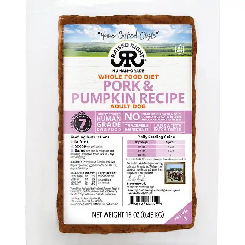 Raised Right Adult Dog Pork & Pumpkin Pate 1 Lb