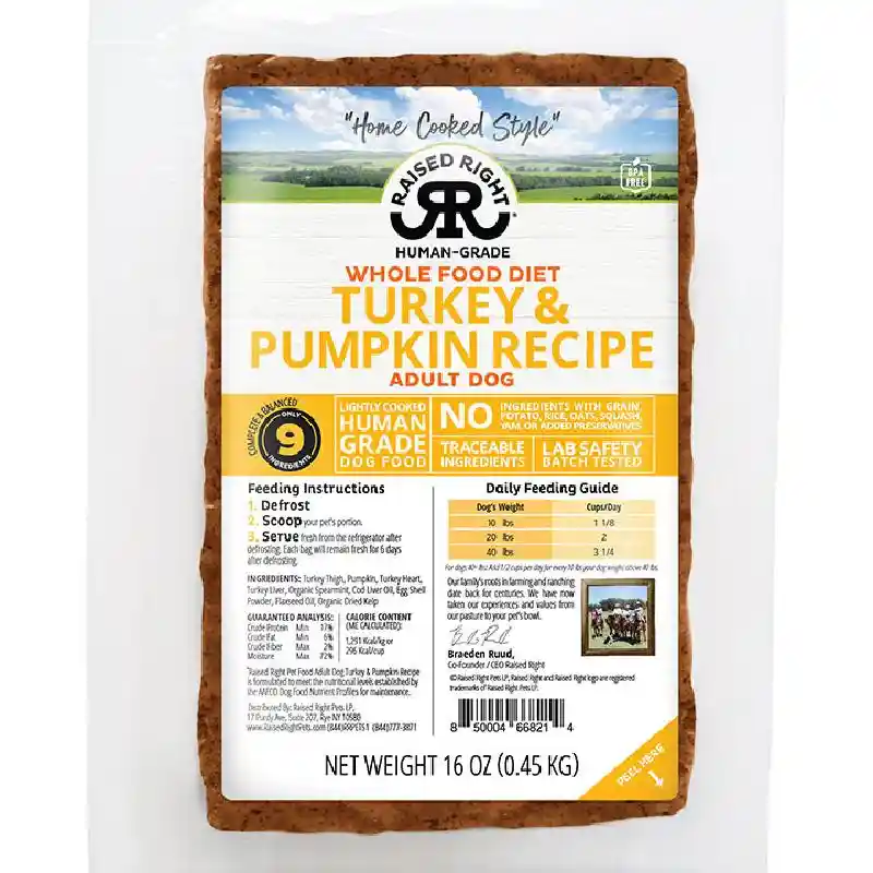 Raised Right Adult Dog Turkey & Pumpkin Pate 1 Lb