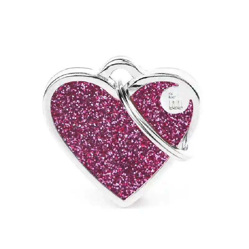My Family Pet Tag Pink Glitter Heart Small