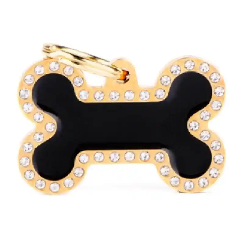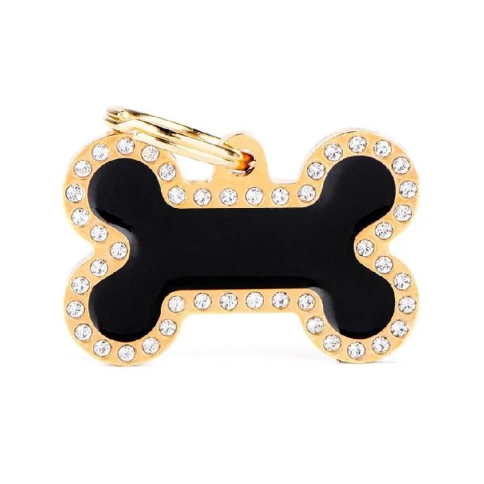 My Family Pet Tag Large Black Bone With Crystals