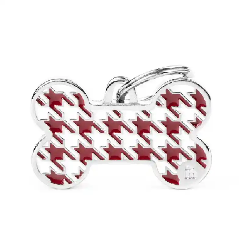 My Family Pet Tag Red Houndstooth Bone Small